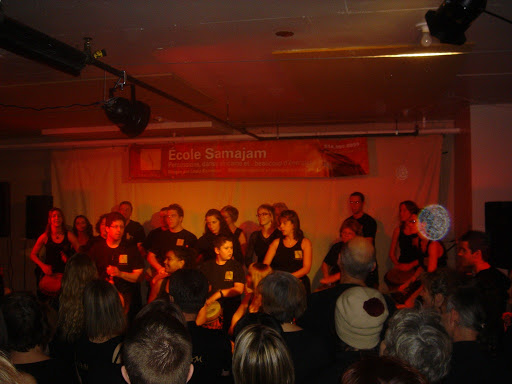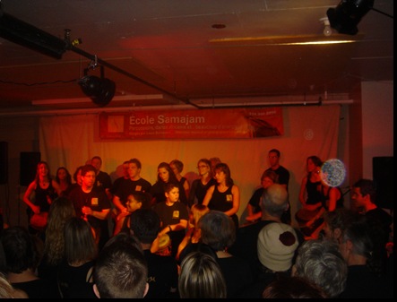 En ce lundi midi, je suis encore en train de me remettre de toute l'incroyable énergie absorbée à la fameuse soirée de vendredi soir dernier, qui s'est terminée vers les six heures du matin. En un soir, il y a eu répétition, prestation incroyable, lancement de la troupe, soirée de rave et jam percussif. Un méchant menu qui garantissait à cette soirée une place enviable dans les annales de l'école.