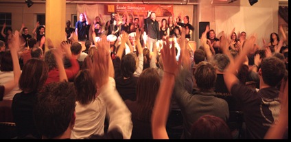 Le mercredi soir, je retrouve la gang d'anciens Débutant 1 devenus des D2 maintenant. Ça m'étonne toujours de voir à quel point le temps file! C'est la première fois en tant que prof que je vis le fameux "syndrome de la répétition", où nous redonnons grosso modo le même programme, amputé seulement d'un rythme. Mais il va sans dire que ce cours sera bien différent de la session dernière, puisque les cinquante et quelques étudiants qui le composent sont bien différents de leurs prédécesseurs. C'est là toute la magie et l'intensité de l'enseignement...Rien n'est pareil. Nous avons eu un super beau premier cours avec eux, et ça augure bien pour le reste.